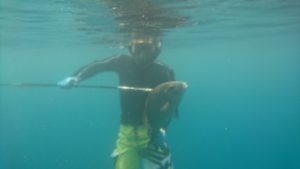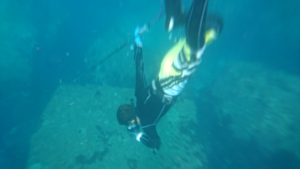 趣味でスピアフィッシングをしているので、昼間は海に潜っております。
