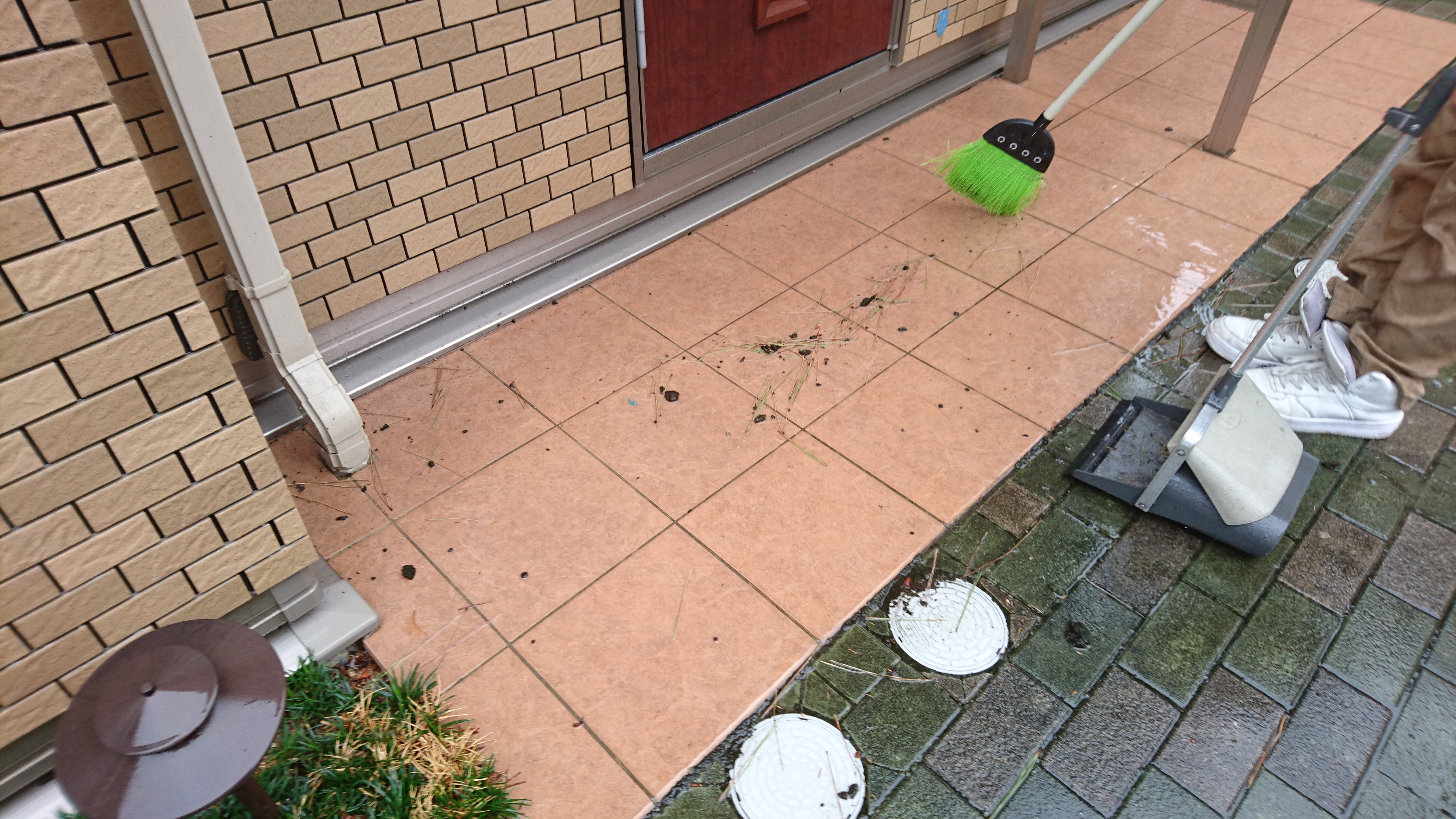 ・・・そんな事を言ってますが、21号が直撃のさなか どうしても日程変更が難しかったので 外で共用部清掃業務を勤しんでおりました💧(笑)