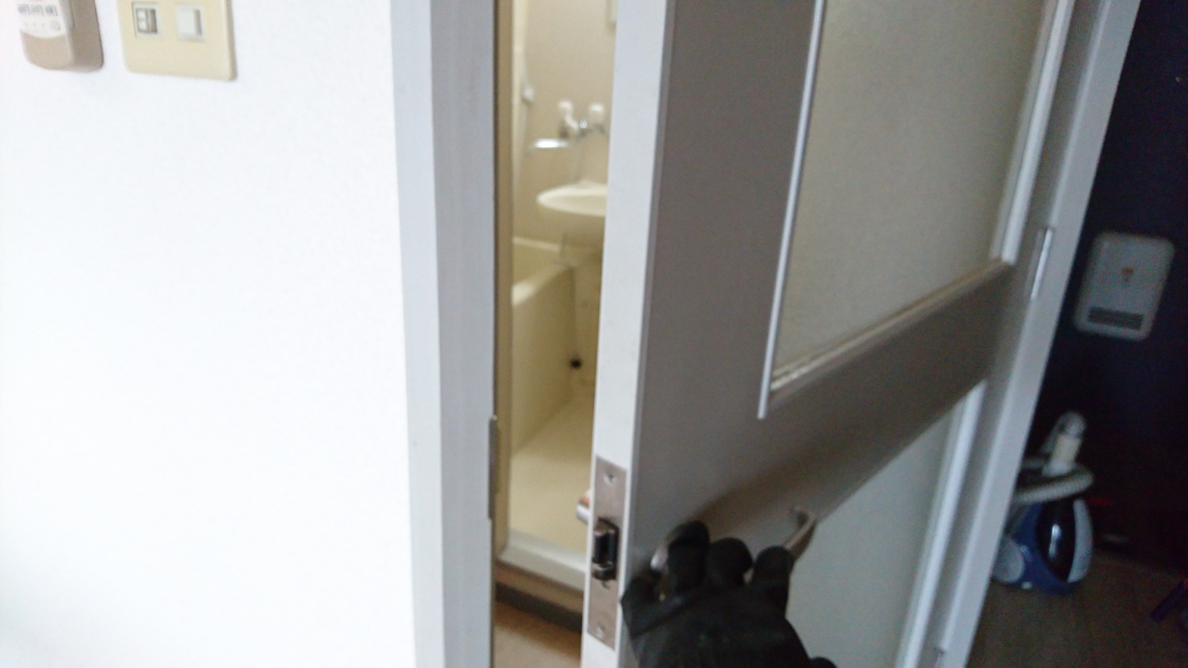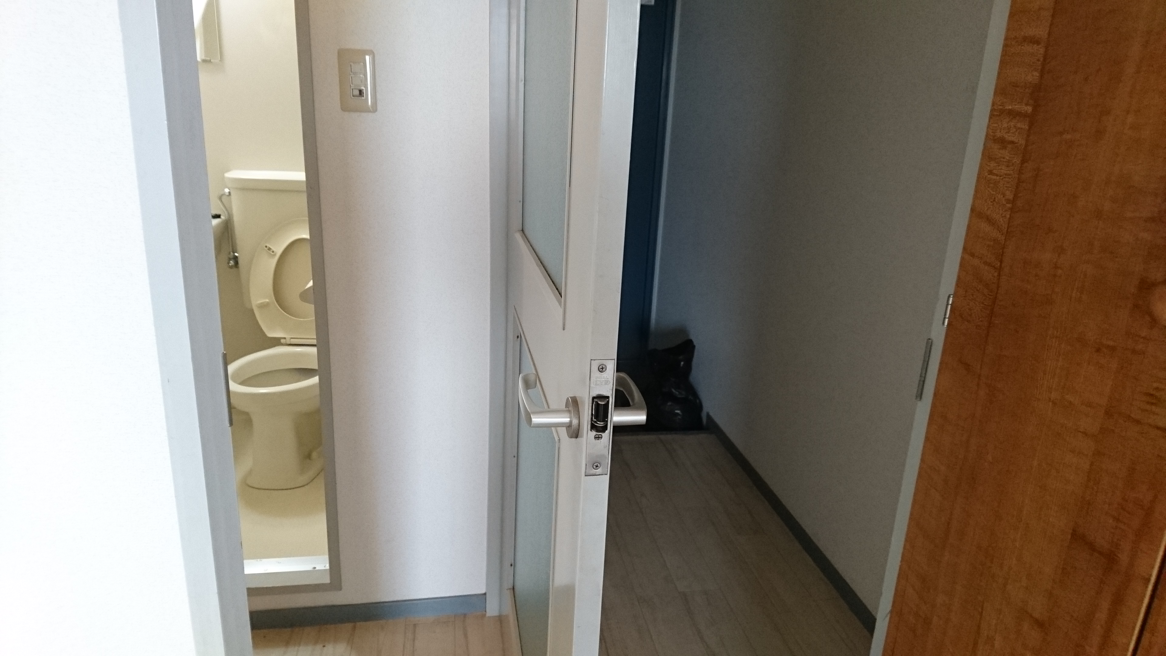 部屋の中から撮ってるんですが、建具を挟んで左が洗面所 右が玄関になっています